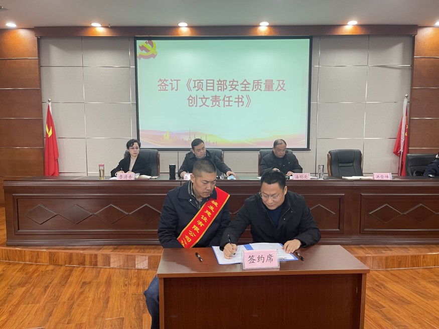 會(huì)上,公司分管領(lǐng)導(dǎo)和各項(xiàng)目部依次簽訂《項(xiàng)目部安全質(zhì)量及創(chuàng)文責(zé)任書(shū)》《項(xiàng)目廉潔建設(shè)目標(biāo)責(zé)任書(shū)》,全體參會(huì)人員現(xiàn)場(chǎng)簽訂《工程項(xiàng)目建設(shè)廉潔承諾書(shū)》。